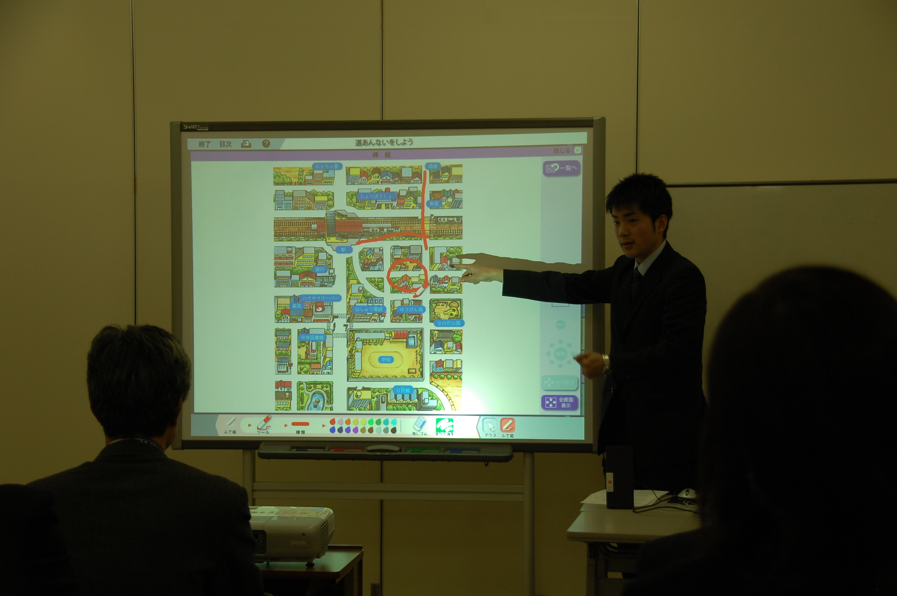 エプソン販売株式会社様の実物投影機を使った実践発表です。上教大の渡辺様から小学校5年生理科「もののとけかた」の導入をしてくださいました。簡単に接続することができ、実感を伴って習得する学習の手助けになる教材でした。